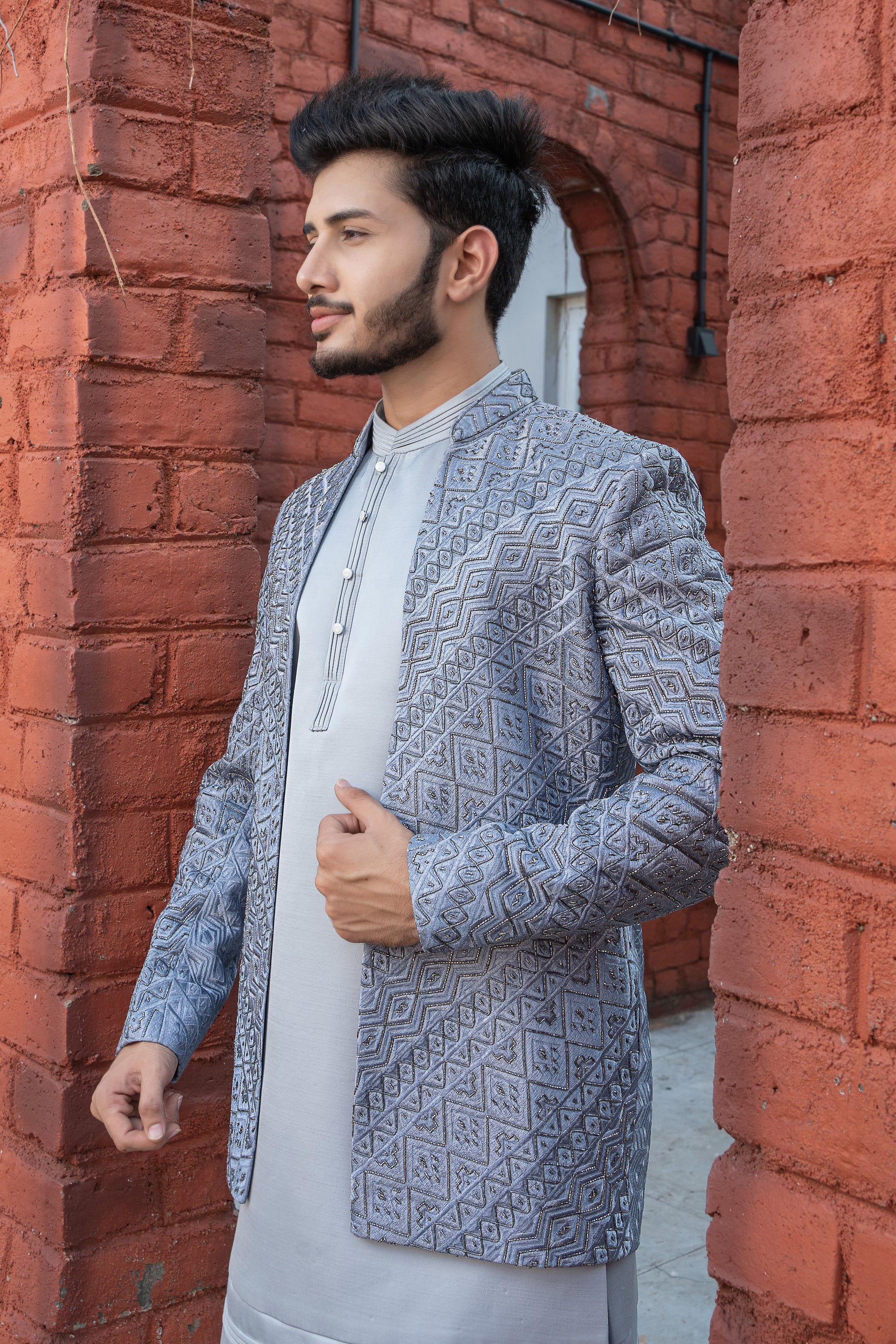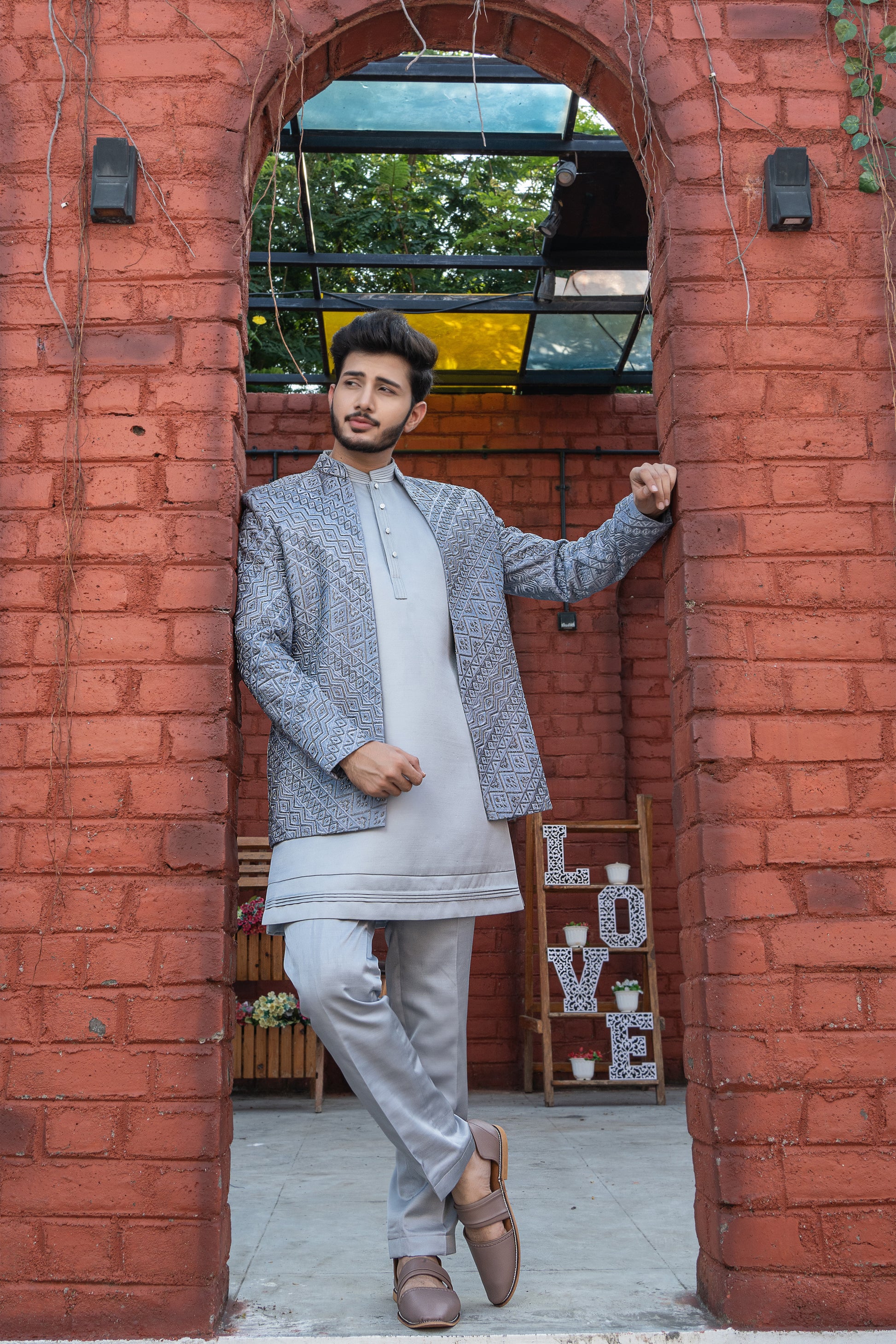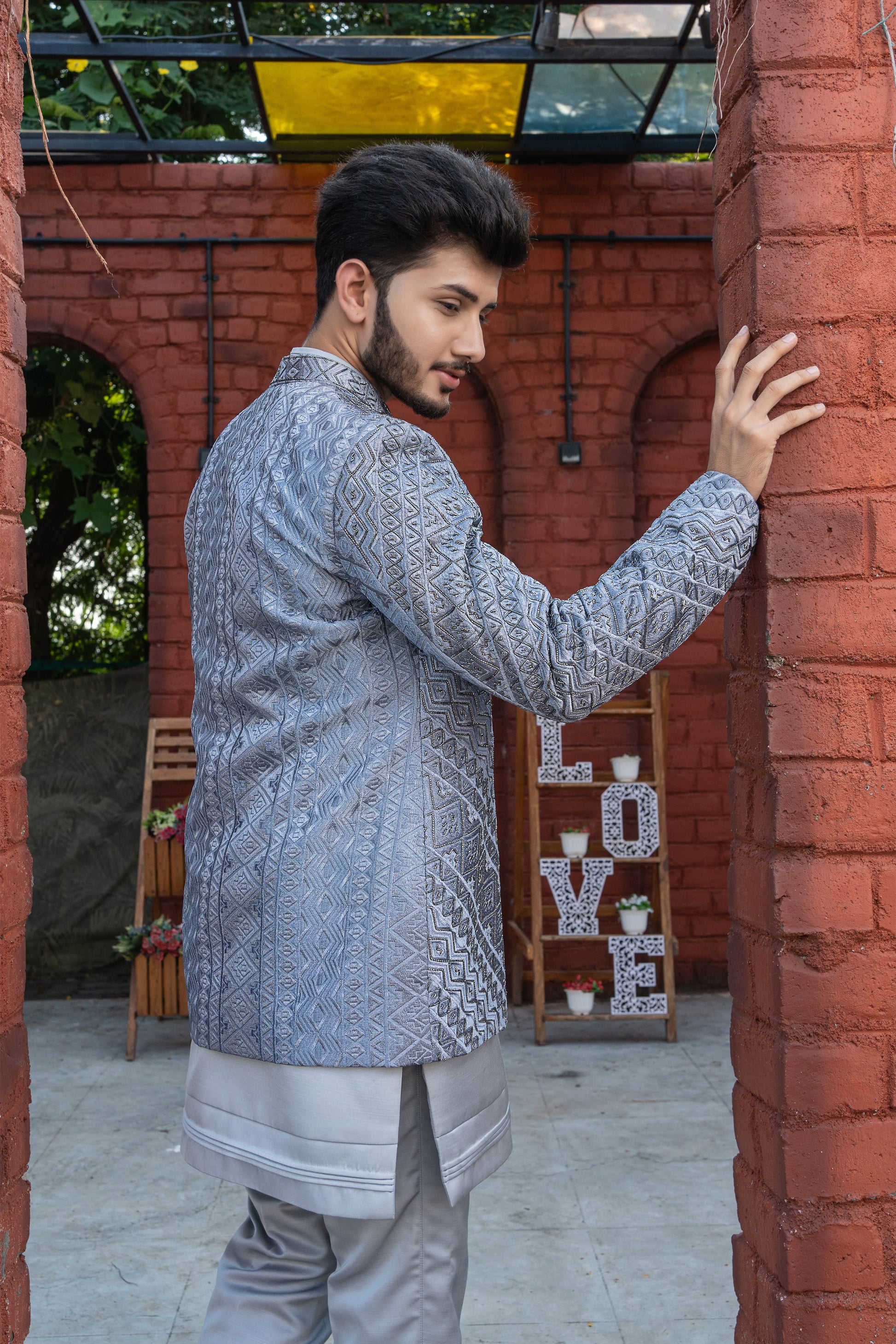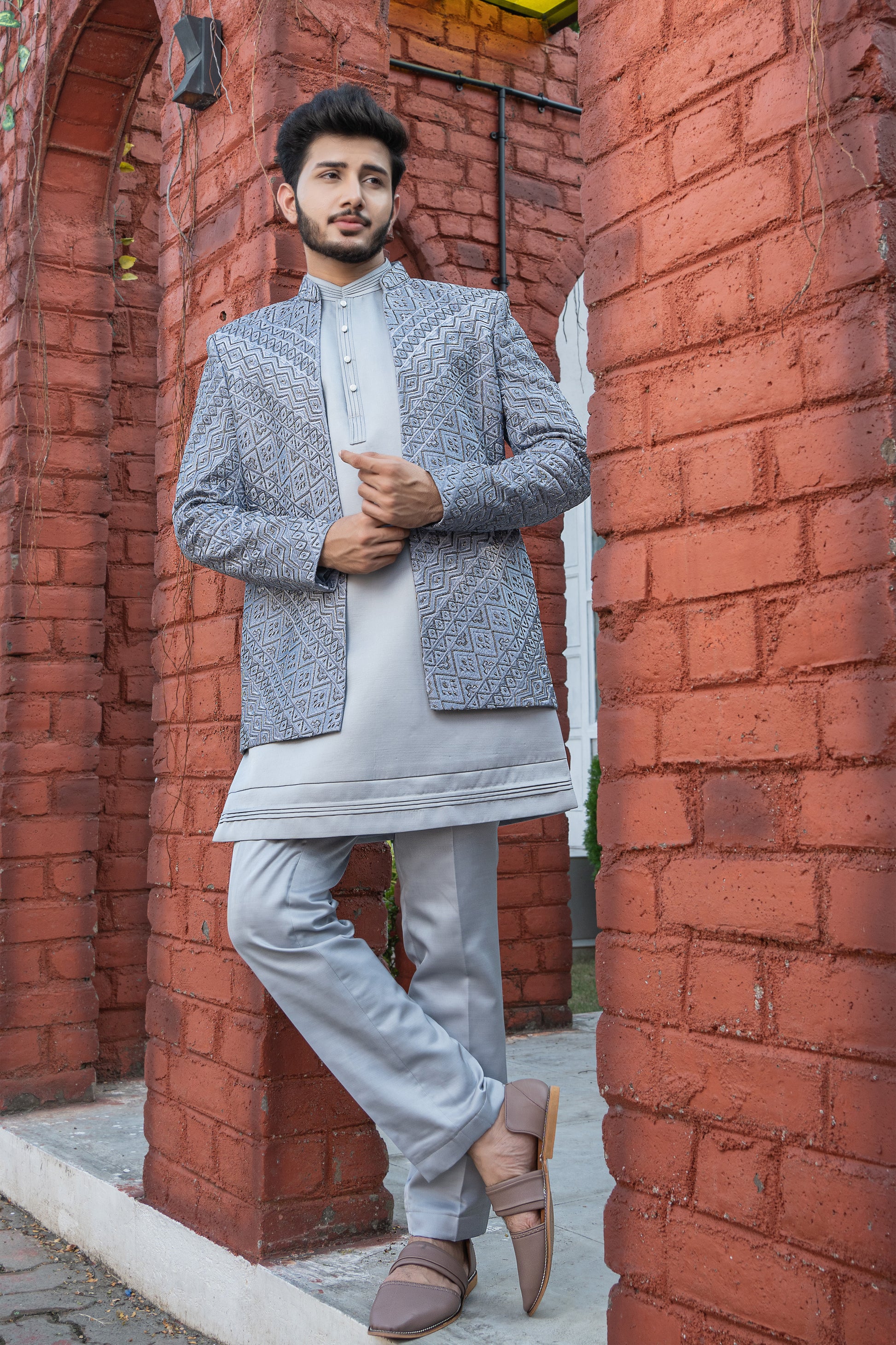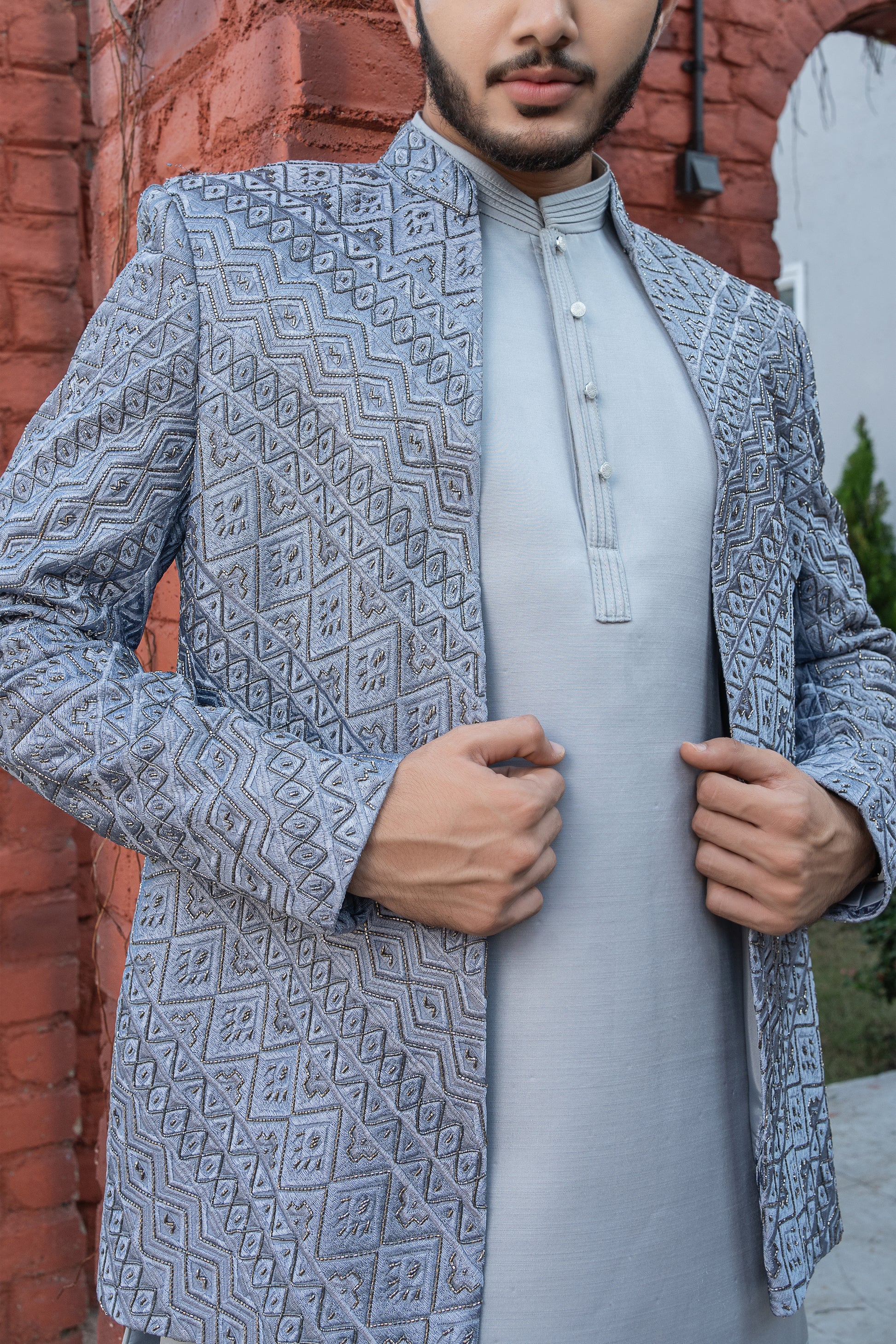 Dyeable Embroidery fabrics Open Indo-Western With Katdana And Moti Khatli Work With Pintuck Pattern Long-Koti And Pant.